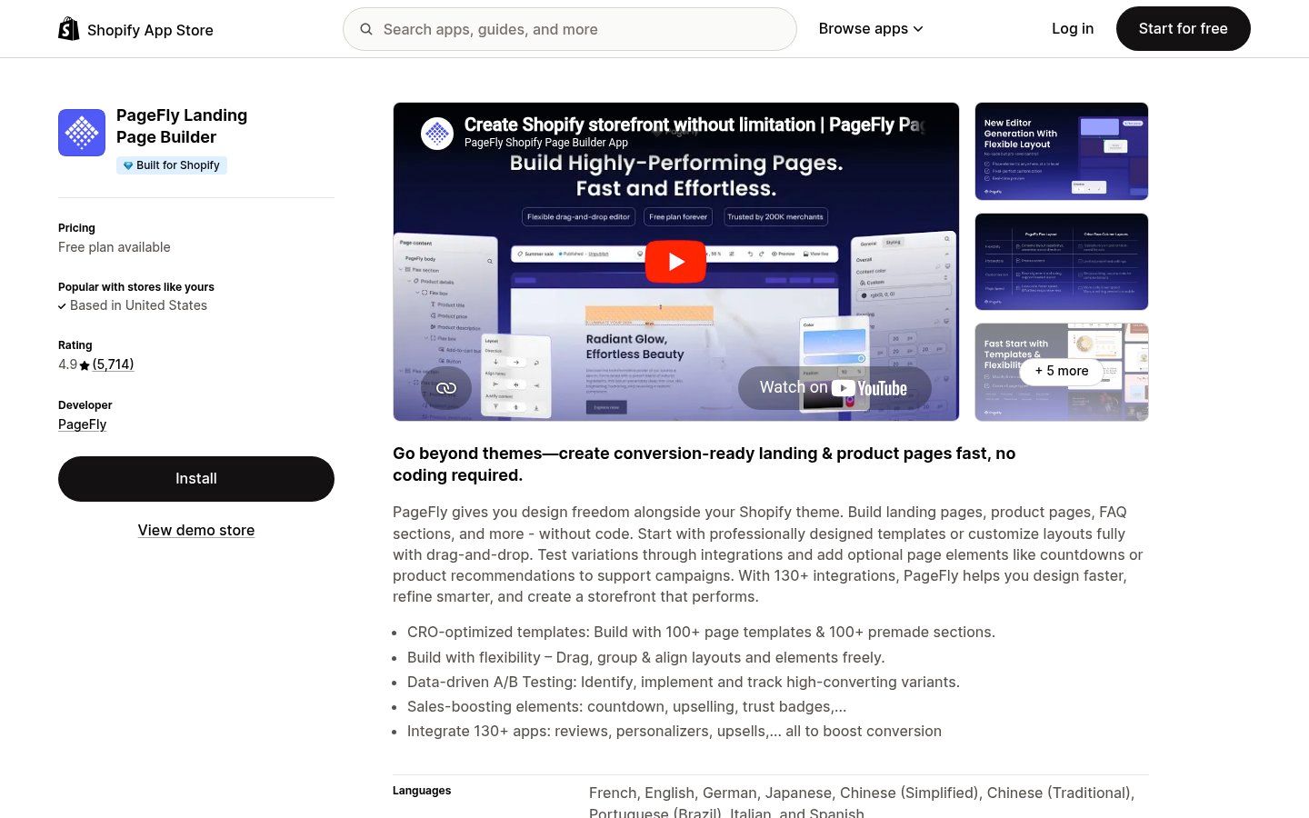 Install PageFly if you're launching niche landing pages on a tight budget—the free tier covers 5,000 views and drag-and-drop templates cut build time to under an hour. Skip if you run over 200k monthly views; page limits will throttle traffic mid-month.