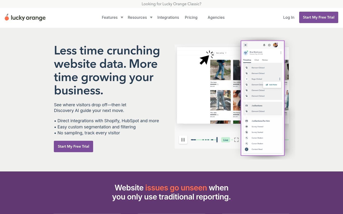 Lucky Orange is a Shopify analytics app that records visitor sessions, builds heatmaps, and tracks checkout funnels from homepage to purchase. Its pitch: full-feature access on the free tier with pre-built Shopify funnels and AI-generated insights that explain where conversion…
